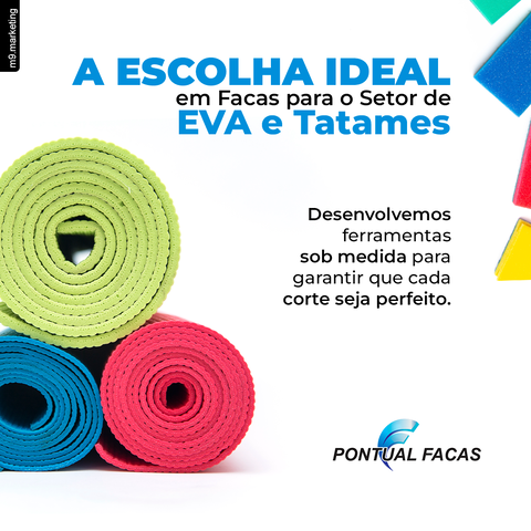 Produzir tatames de EVA requer cortes precisos e uniformes, essenciais para a qualidade final do produto. As facas para EVA da Pontual Facas são projetadas para oferecer precisão, durabilidade e eficiência, atendendo às demandas desse segmento.