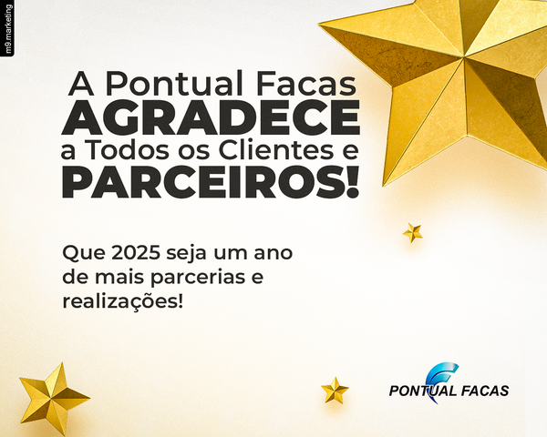 Chegamos ao final de mais um ano e queremos expressar nossa sincera gratidão a todos os nossos clientes, parceiros e colaboradores que fizeram parte dessa trajetória. A Pontual Facas não seria o que é hoje sem a confiança e o apoio de cada um de vocês. Foi um ano de muitas conquistas e isso só foi possível graças à parceria e dedicação de todos.