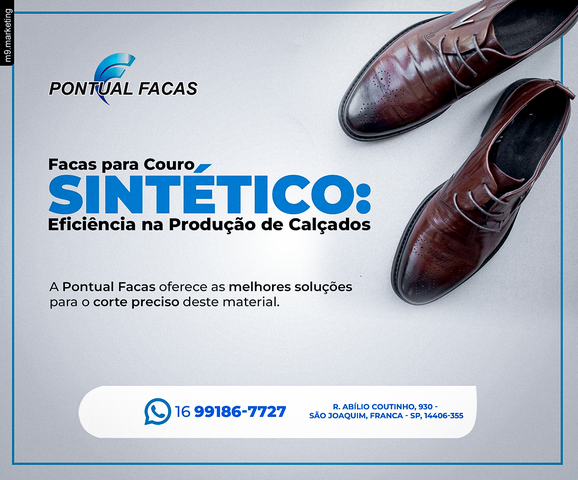 O couro sintético é amplamente utilizado na fabricação de calçados modernos, e a Pontual Facas oferece as melhores soluções para o corte preciso deste material. Nossas facas para couro sintético são projetadas para garantir que cada peça seja cortada com exatidão, preservando a integridade do material e acelerando o processo produtivo. A escolha de facas adequadas para este tipo de corte pode fazer toda a diferença na qualidade final do produto.